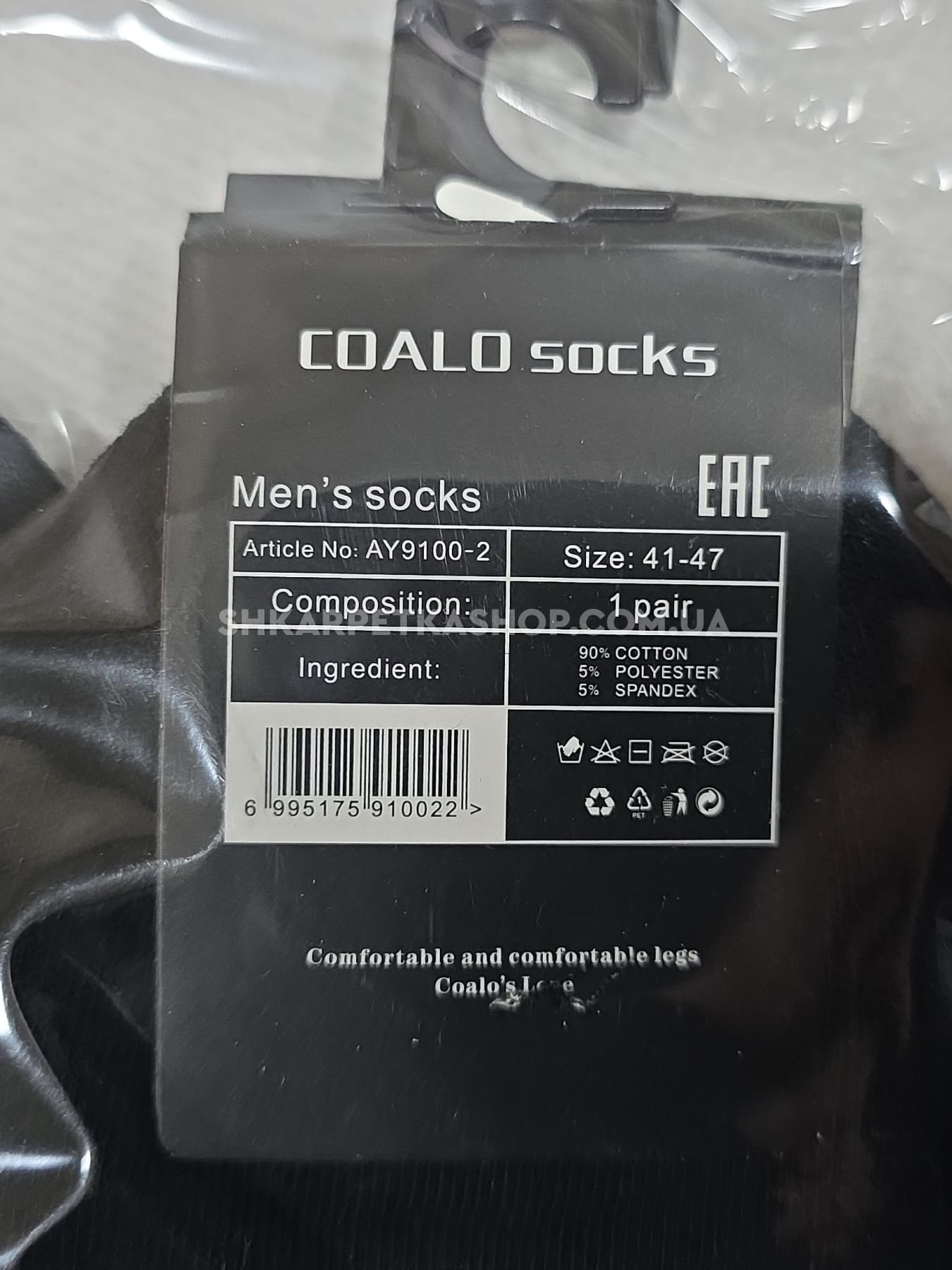 Шкарпетки "Coalo" AY-9100-2 стрейч/cotton чоловічі, р. 41-47 -чорні -(Укорочені +з широкою гумкою в рубчик +посередині резинка фіксатор) -уп. 10 шт