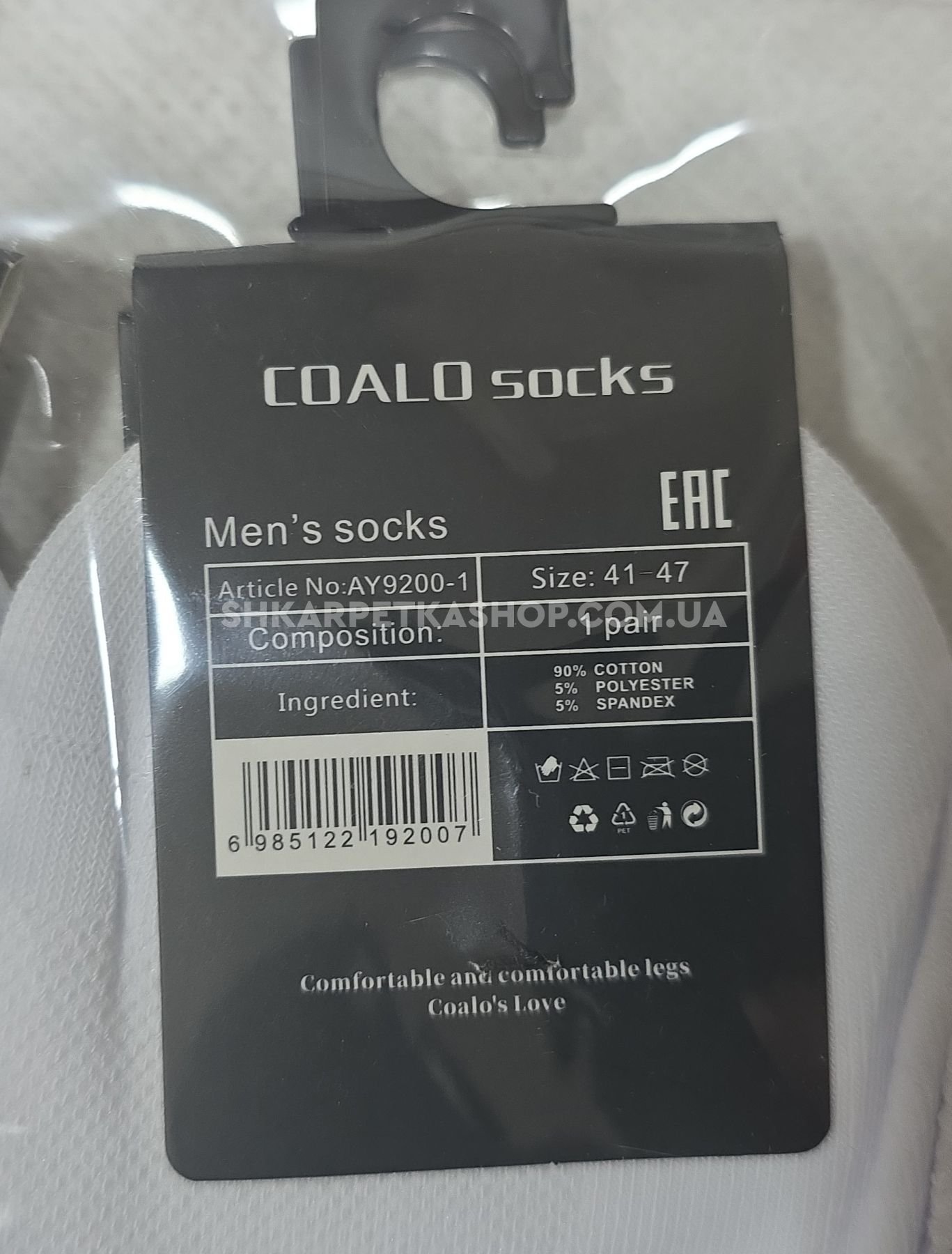 Шкарпетки "Coalo" AY-9200-1 сітка/cotton чоловічі, р. 41-47 -(Сітка -білі /укорочені +з широкою гумкою в рубчик +посередині резинка фіксатор) -уп. 10 шт