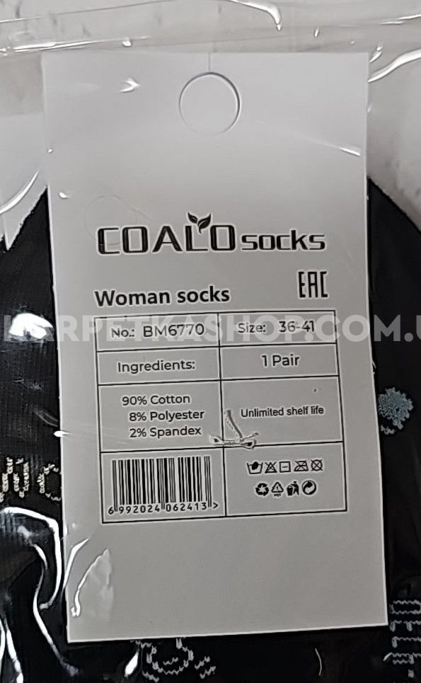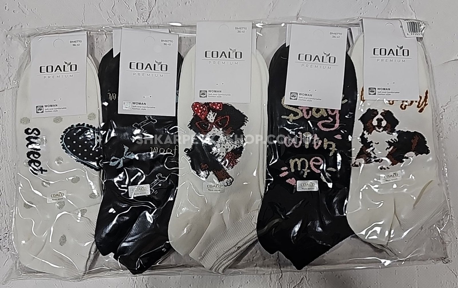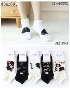 Шкарпетки "COALO" BМ-6770 стрейч /cotton жіночі, р. 36-41 -(короткі / чорні та білі +великі собачки + велике серце в крапці + написи) - уп. 10 шт