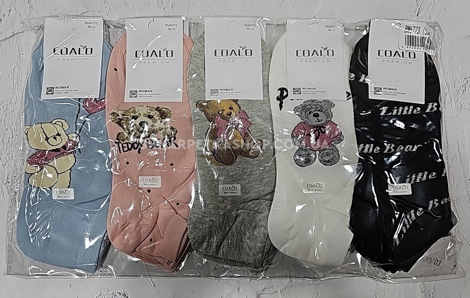 Шкарпетки "COALO" BМ-6773 стрейч /cotton жіночі, р. 36-41 -(короткі /кольорові +мікс великих ведмедиків +написи) - уп. 10 шт