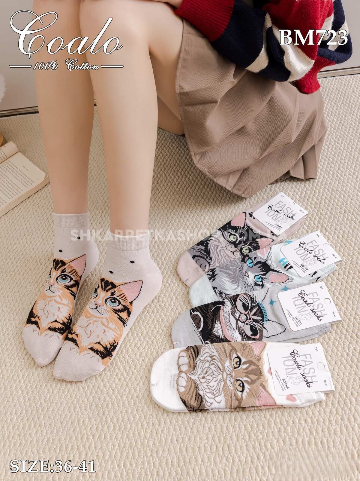 Шкарпетки "COALO" BМ-723 стрейч /cotton жіночі, р. 36-41 -асорті -(укорочені /3D - мікс котиків) - уп. 10 шт
