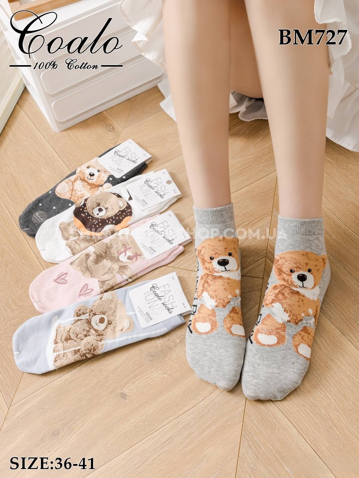 Шкарпетки "COALO" BМ-727 стрейч /cotton жіночі, р. 36-41 -асорті -(укорочені /3D -мікс різних ведмедиків) - уп. 10 шт