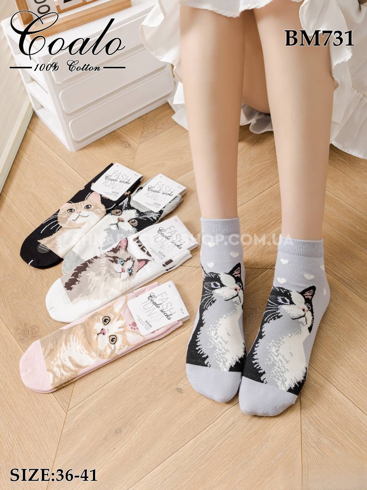 Шкарпетки "COALO" BМ-731 стрейч /cotton жіночі, р. 36-41 -асорті -(укорочені /3D -мікс різних котиків) - уп. 10 шт