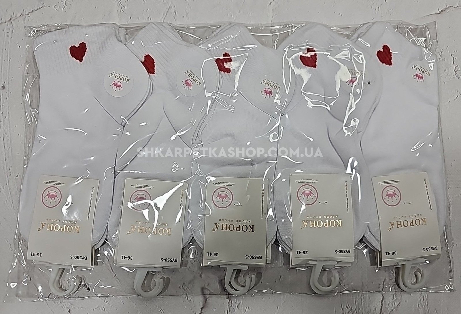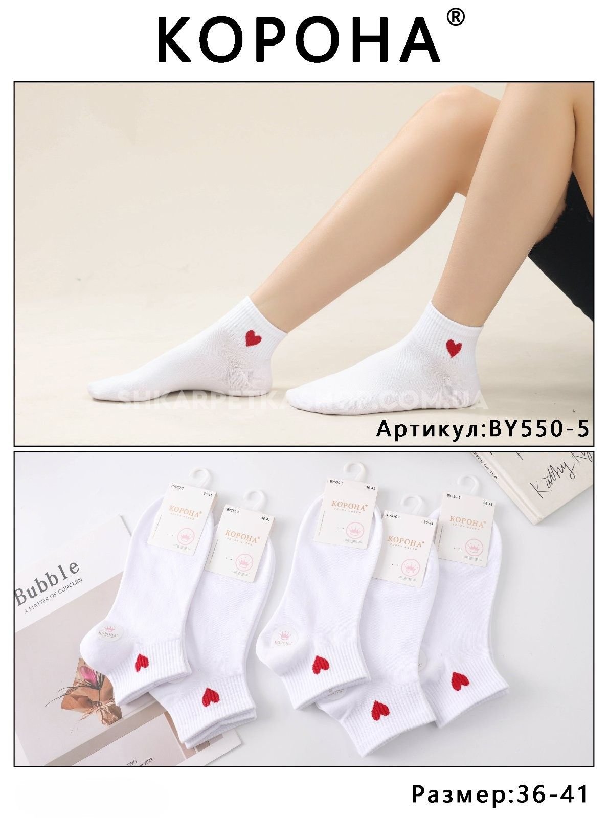 Шкарпетки "Корона" BY-550-5 стрейч /cotton жіночі, р. 36-41 -асорті -(Укорочені №1 /білі +на гумці в рубчик червоне серце) -уп. 10 шт