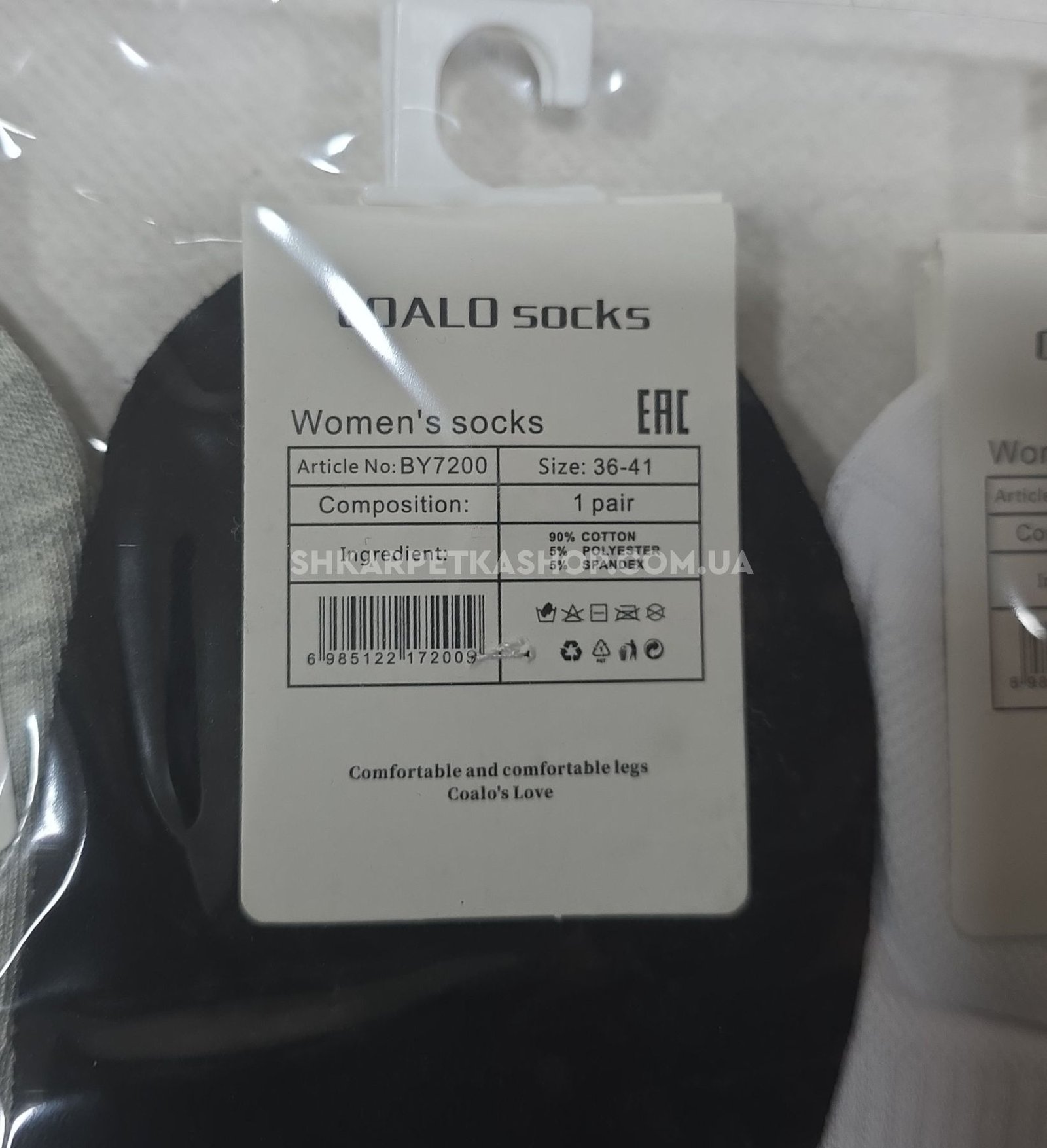 Шкарпетки "Coalo" ВY-7200 сітка/cotton жіночі, р. 36-41 -(Сіточка -асорті /укорочені +з широкою гумкою в рубчик +посередині резинка фіксатор) -уп. 10 шт