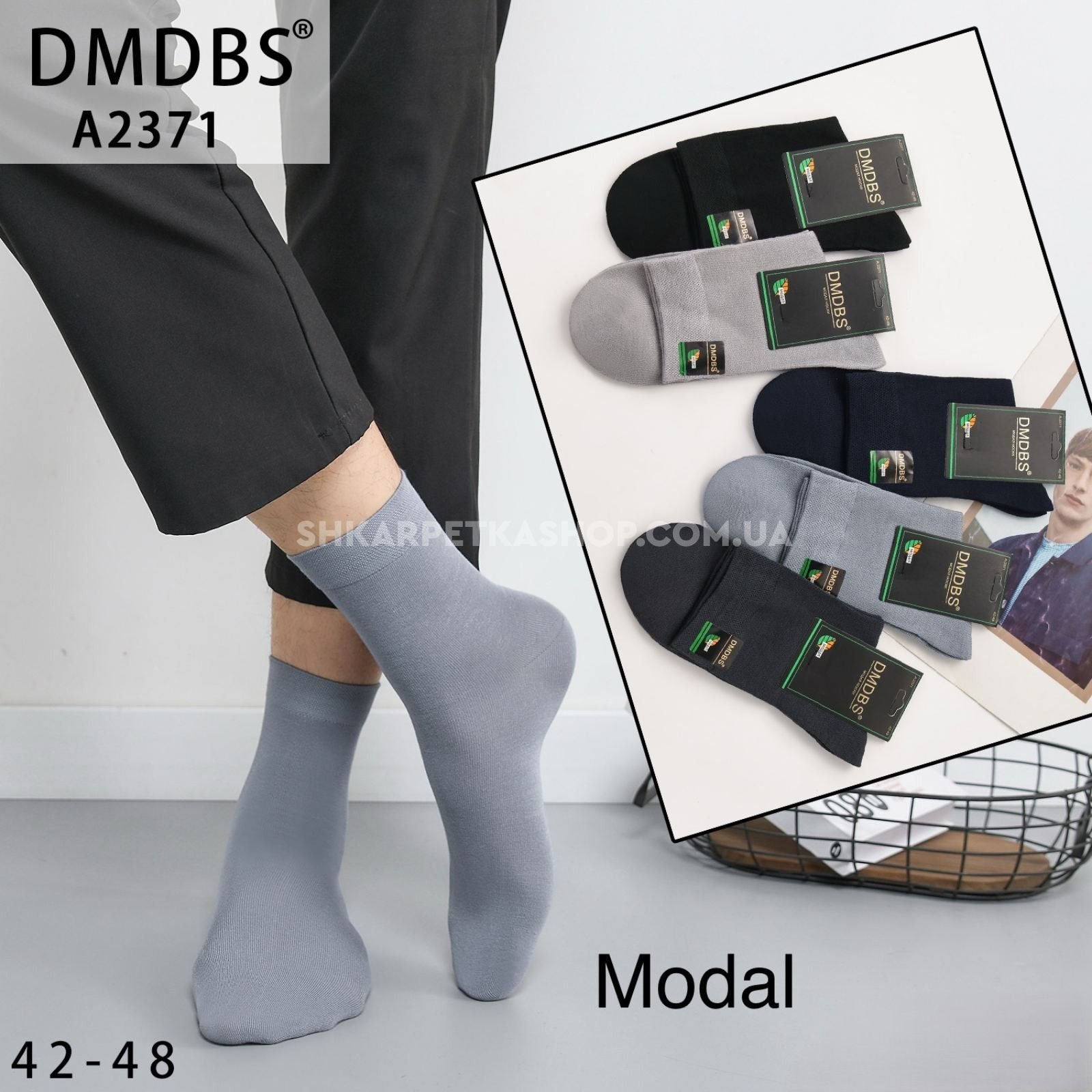 Шкарпетки "DMDBS" A:2371 стрейч /модал чоловічі, р. 42-48 -(асорті /однотонні -класика -А-2371) -уп. 10 шт