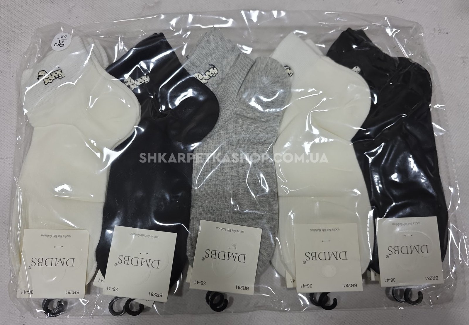 Шкарпетки "DMDBS" BR-281 стрейч /cotton жіночі, р. 36-41 -асорті -(Укорочені /однотонні в дрібний рубчик +збоку на гумці вишита маленька собачка такса) - уп. 10 шт