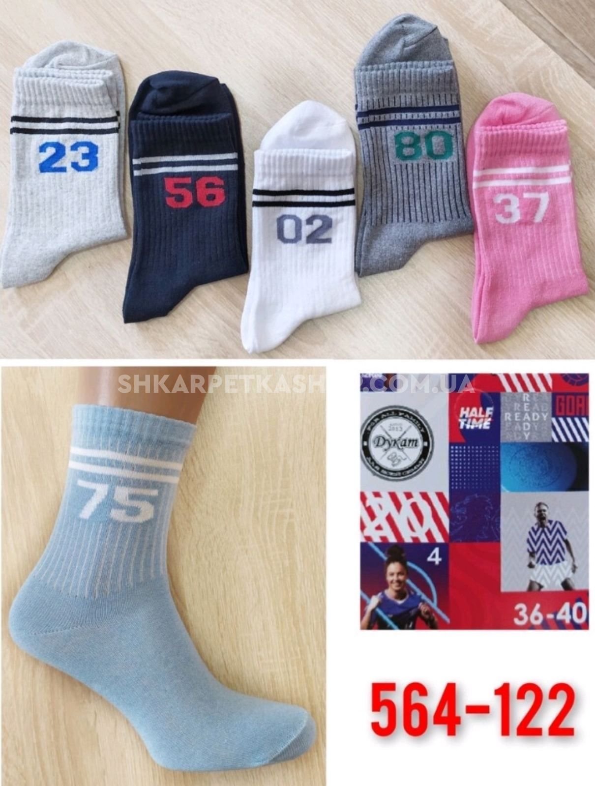 Шкарпетки "Дукат" 564-122 стрейч жіночі, р. 36-40 - асорті -(на гумці в рубчик великі цифри + смужки -жіночі) -уп. 12 шт