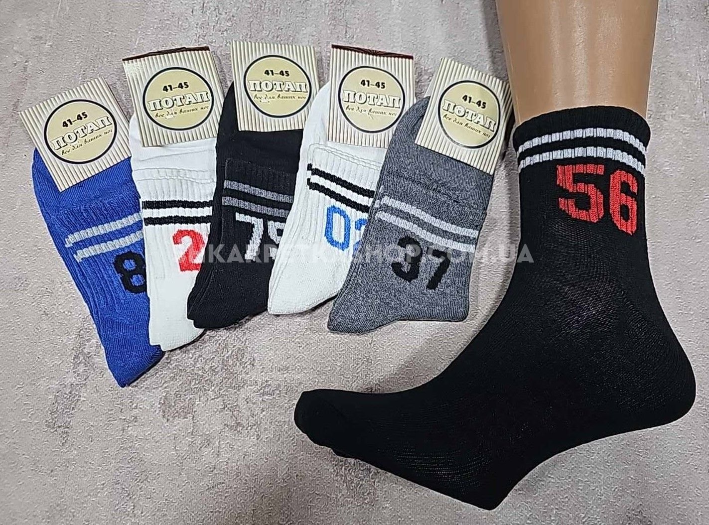 Шкарпетки "Дукат-Потап" 233-56 стрейч чоловічі, р. 41-45 -випадкове асорті -(На середній гумці в рубчик цифри +смужки -чоловічі) -уп.-12 шт