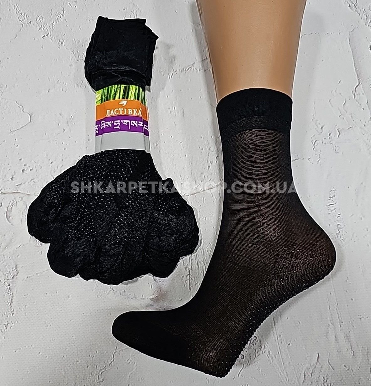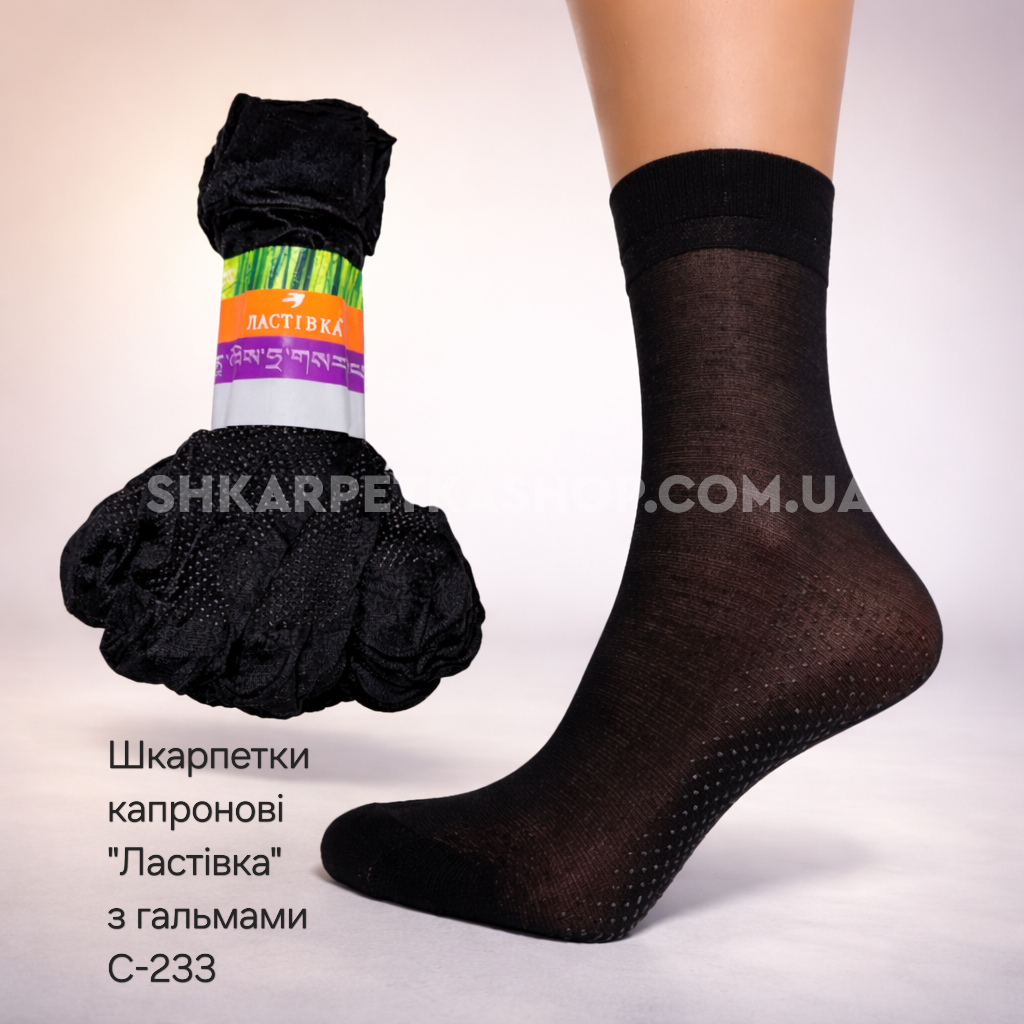 Шкарпетки капронові "Ластівка" С-233 з гальмами -(чорні +силіконові крапки-гальма на стопі) -уп. 10 пар