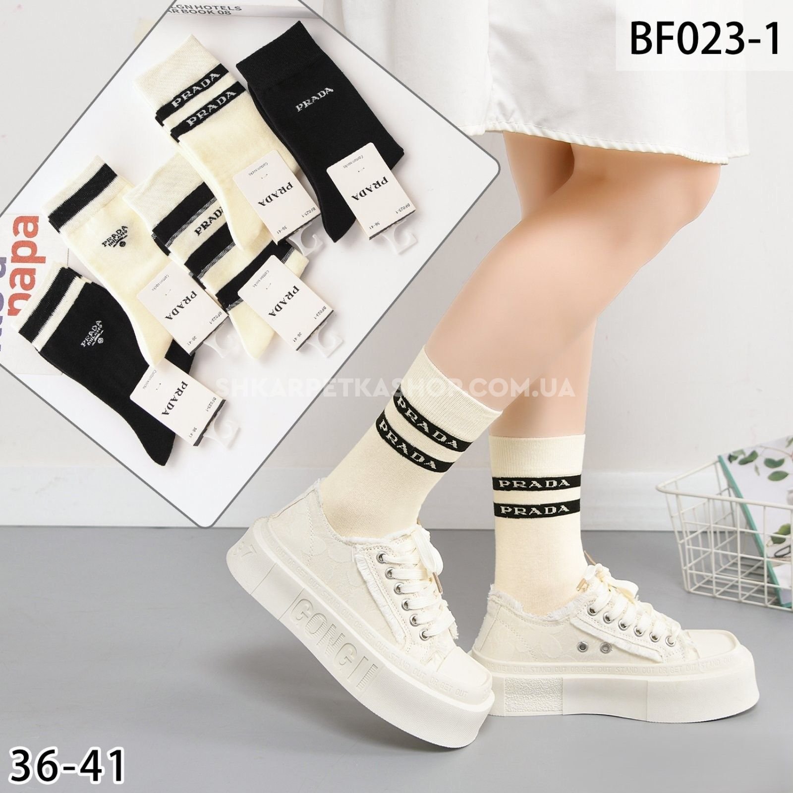 Шкарпетки "Корона / PR..A" ВF-023-1 стрейч /cotton жіночі, р. 36-41 -асорті -(Високі/ Чорно-молочні+смужки+однотонні з написами PR..A) -уп. 10 шт
