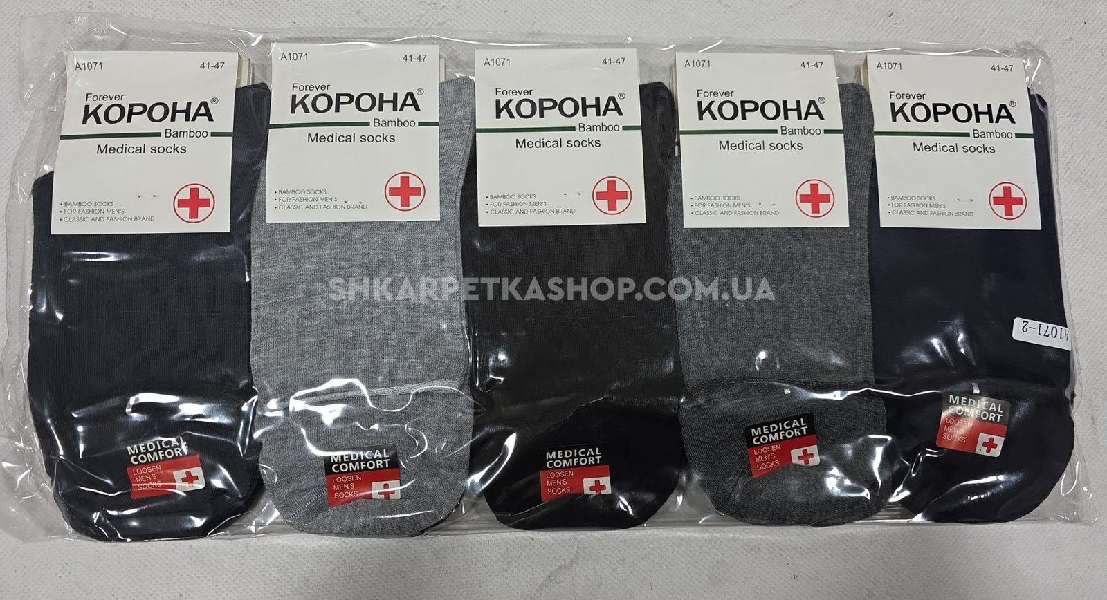 Шкарпетки "Корона" A-1071-2 стрейч /бамбук "Медичні без гумки +" чоловічі, р. 41-47 -асорті -(Без резинки /високі -однотонні із закрученим верхом -чол.) -уп. 10 шт.