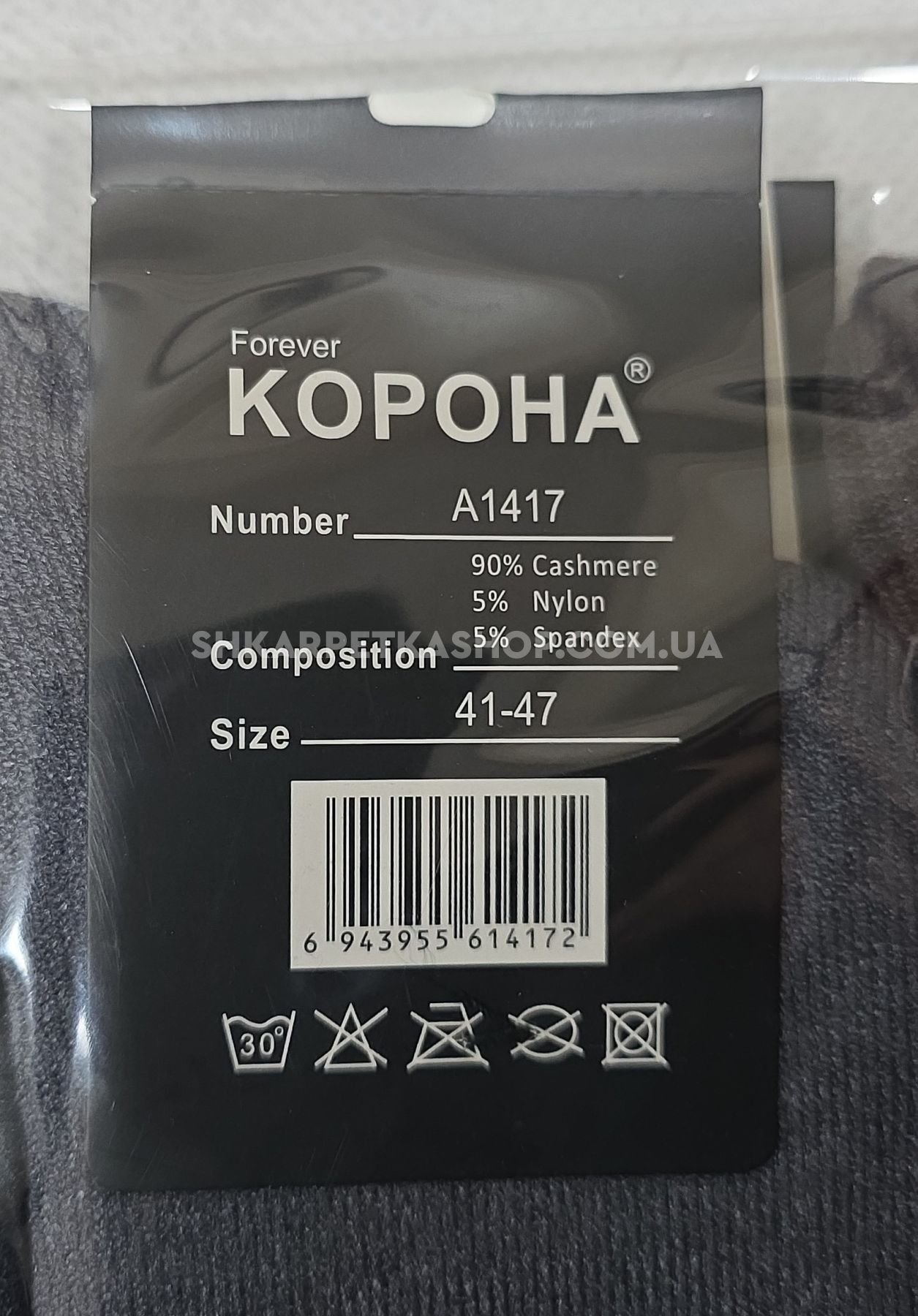 Шкарпетки "КОРОНА" А-1417-1 кашемір з ослабленою гумкою (без резинки) чоловічі, р. 41-47 асорті -(Б/р -однотонні) -уп. 10 шт