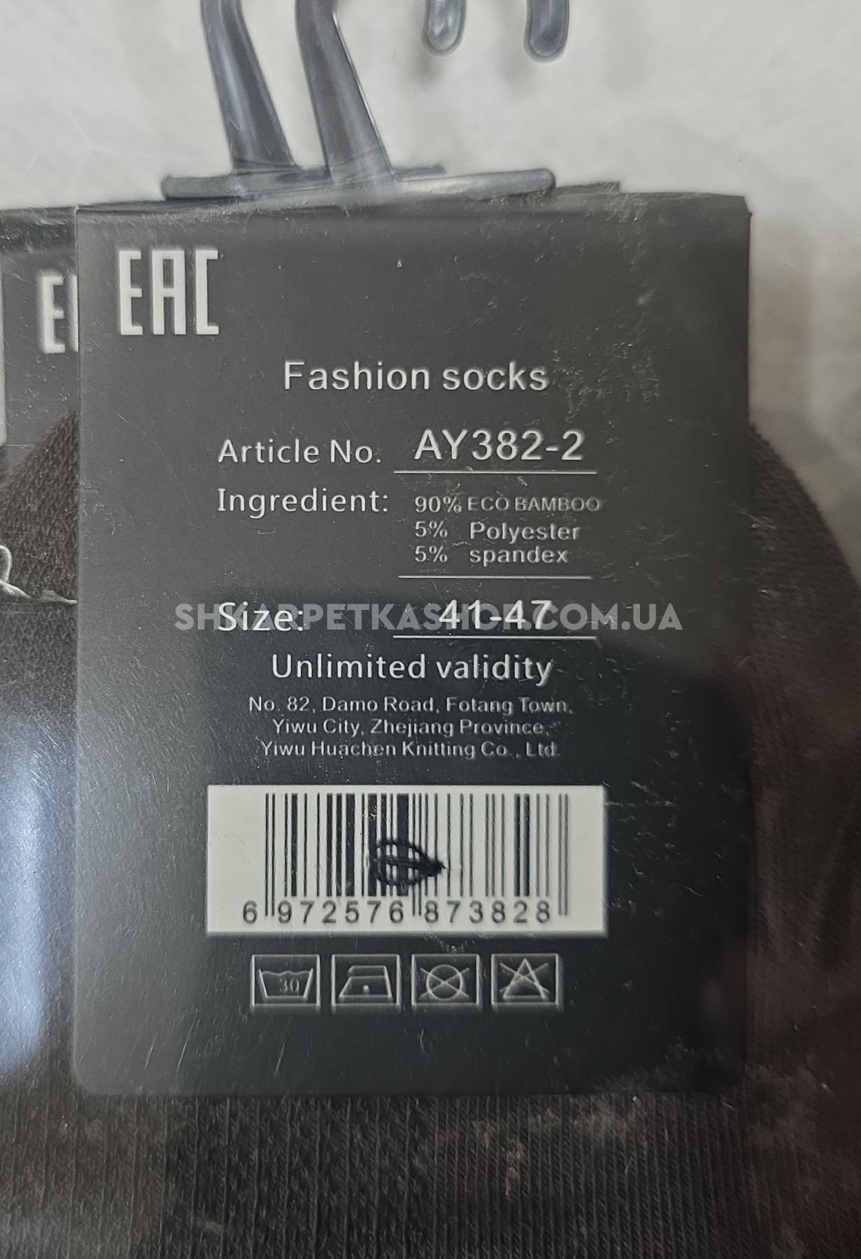 Шкарпетки "Корона" AY-382-2 стрейч /еко бамбук чоловічі, р. 41-47 -(Однотонні /класика з сітчастою в'язкою +збоку вставка з однотонним візерунком) -уп. 10 шт.