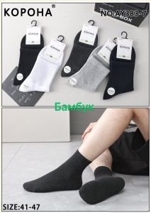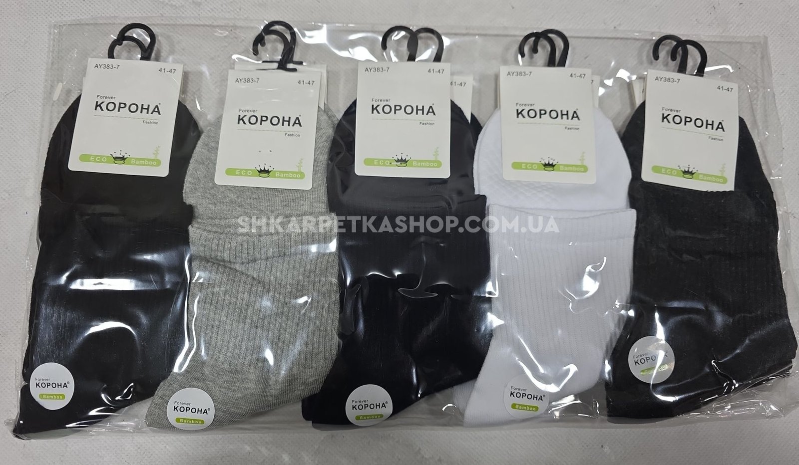 Шкарпетки "Корона" AY-383-7 стрейч /бамбук чоловічі, р. 41-47 -асорті -(Однотонні +широка гумка в рубчик +посередині резинка фіксатор) -уп. 10 шт