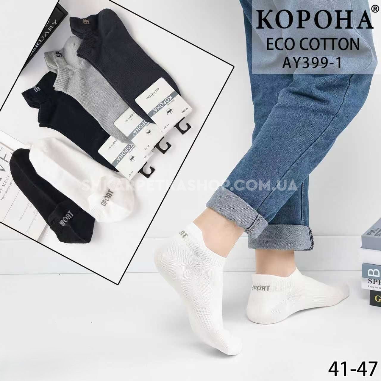 Шкарпетки "Корона" AY-399-1 стрейч/eco cotton чоловічі, р. 41-47 -асорті -(Короткі /однотонні +ззаду з виступом та написом Sport +з гумкою фіксатором посередині) -уп. 10 шт