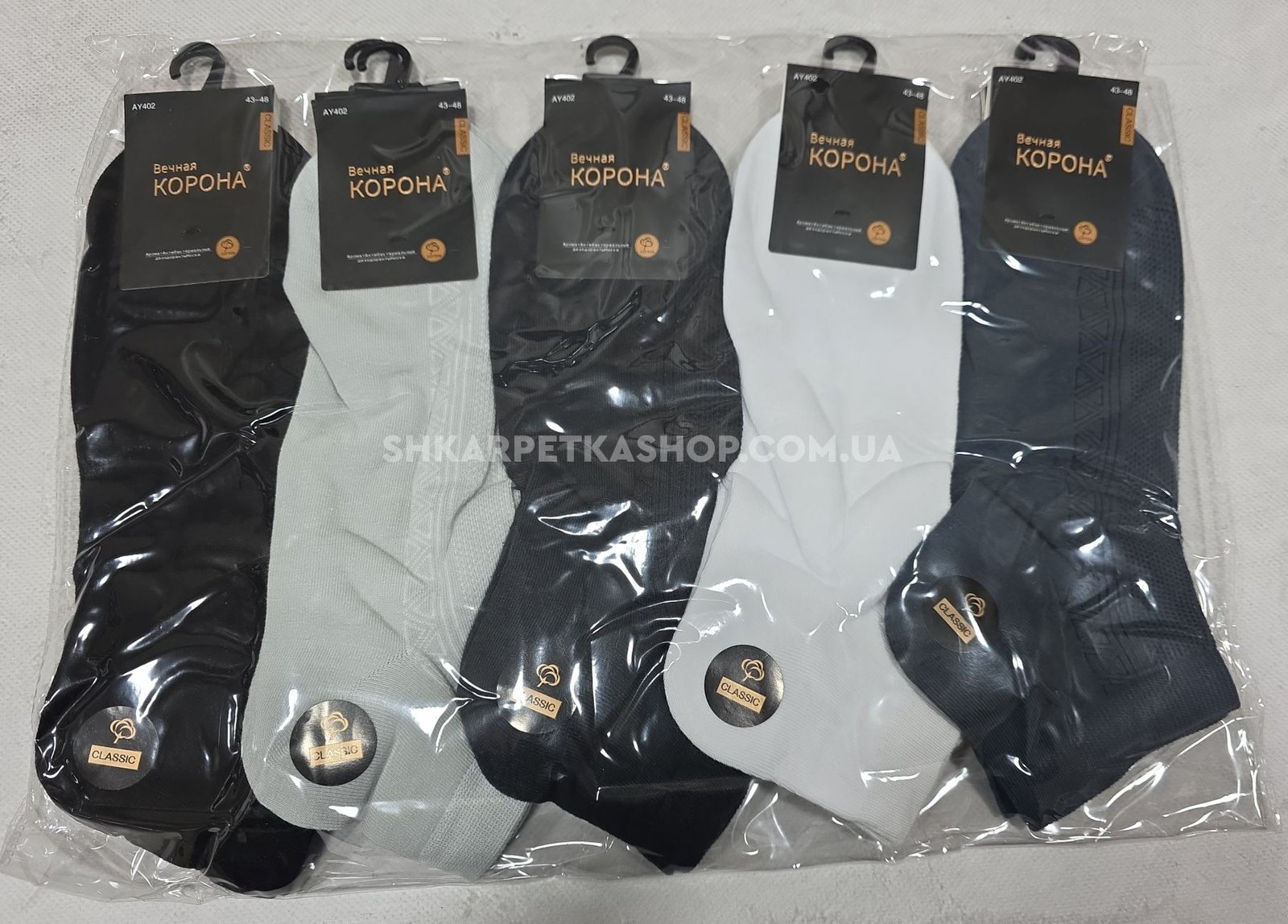 Шкарпетки "Корона" АY-402 сітка/cotton чоловічі, р. 43-48 -асорті -(Сіточка -укорочені /однотонні +з боків однотонний візерунок у довжину) -уп. 10 шт