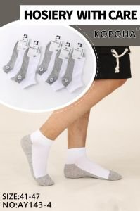 Шкарпетки "Корона" AY143-4 стрейч/бавовна чоловічі, р. 41-47 -(Укорочені з гумкою в рубчик -білий верх +сіра підошва -чоловічі) -уп. 10 шт