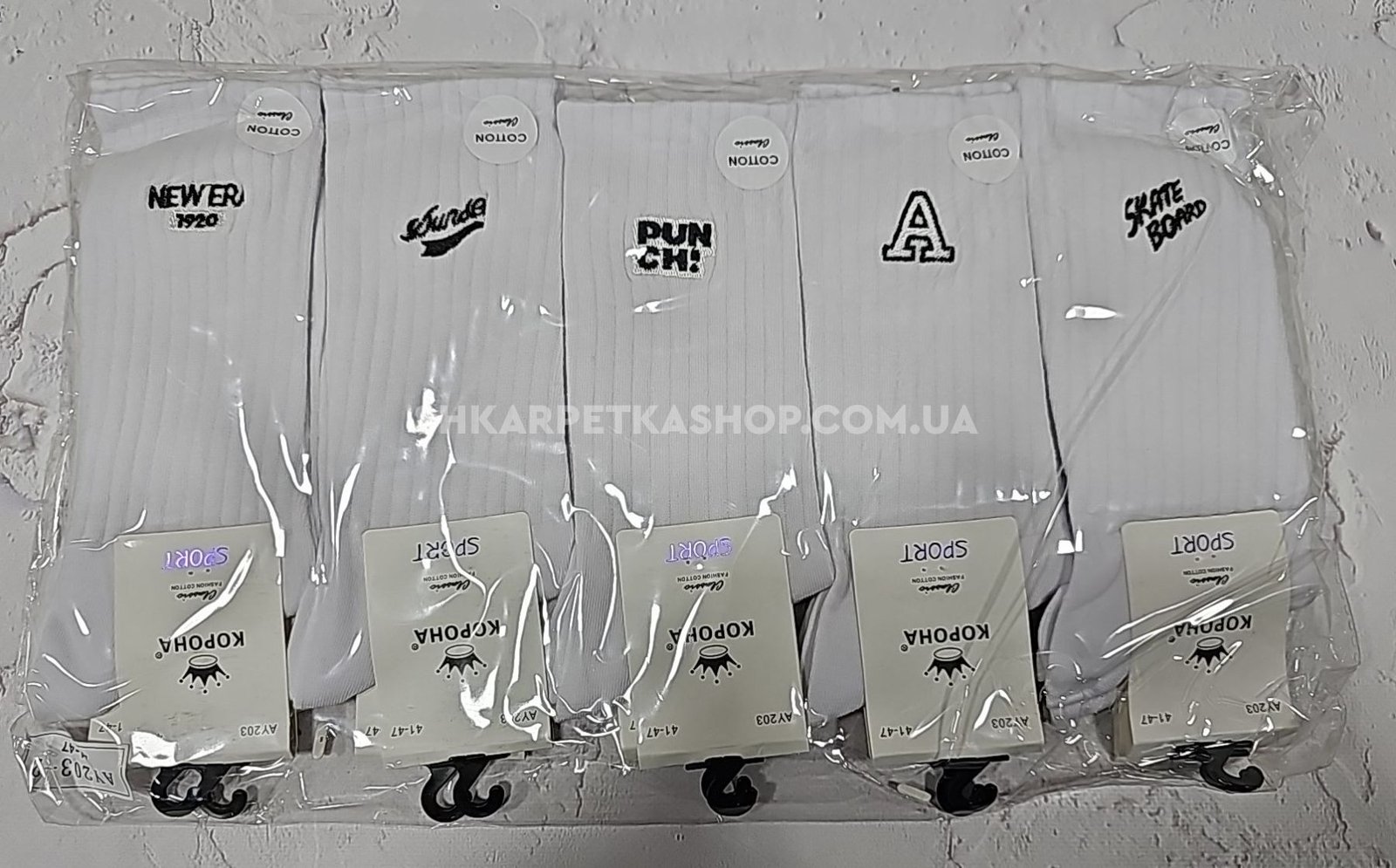 Шкарпетки "Корона" AY203-2 стрейч/бавовна чоловічі, р. 41-47 -асорті -(Теніс/ білі +на високій гумці в рубчик мікс чорних написів -чоловічі) -уп. 10 шт
