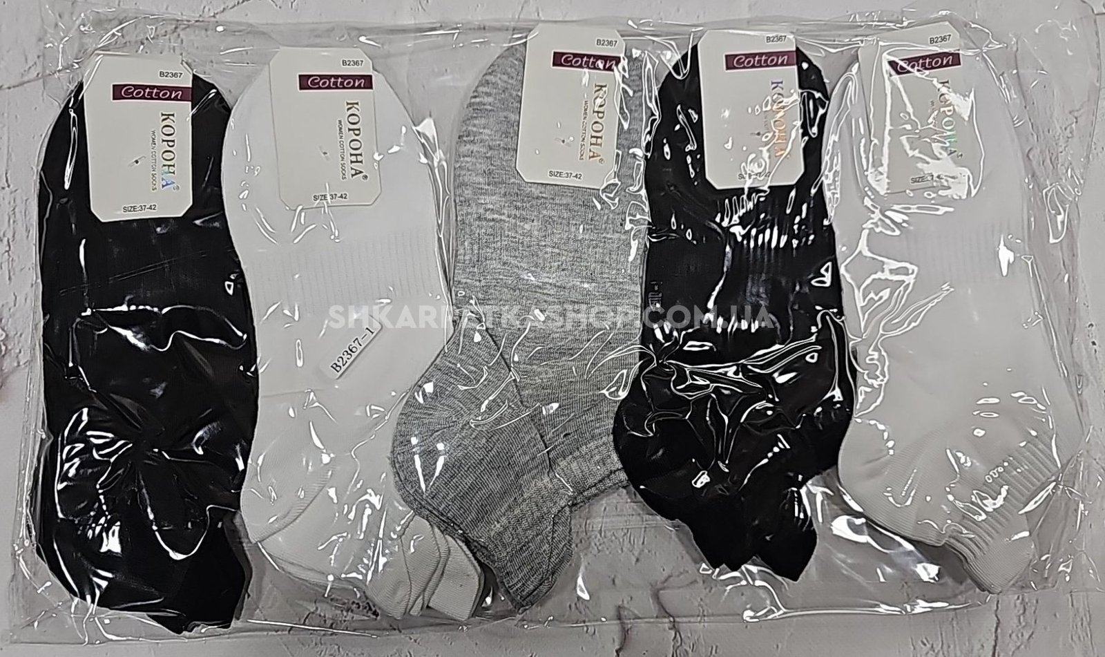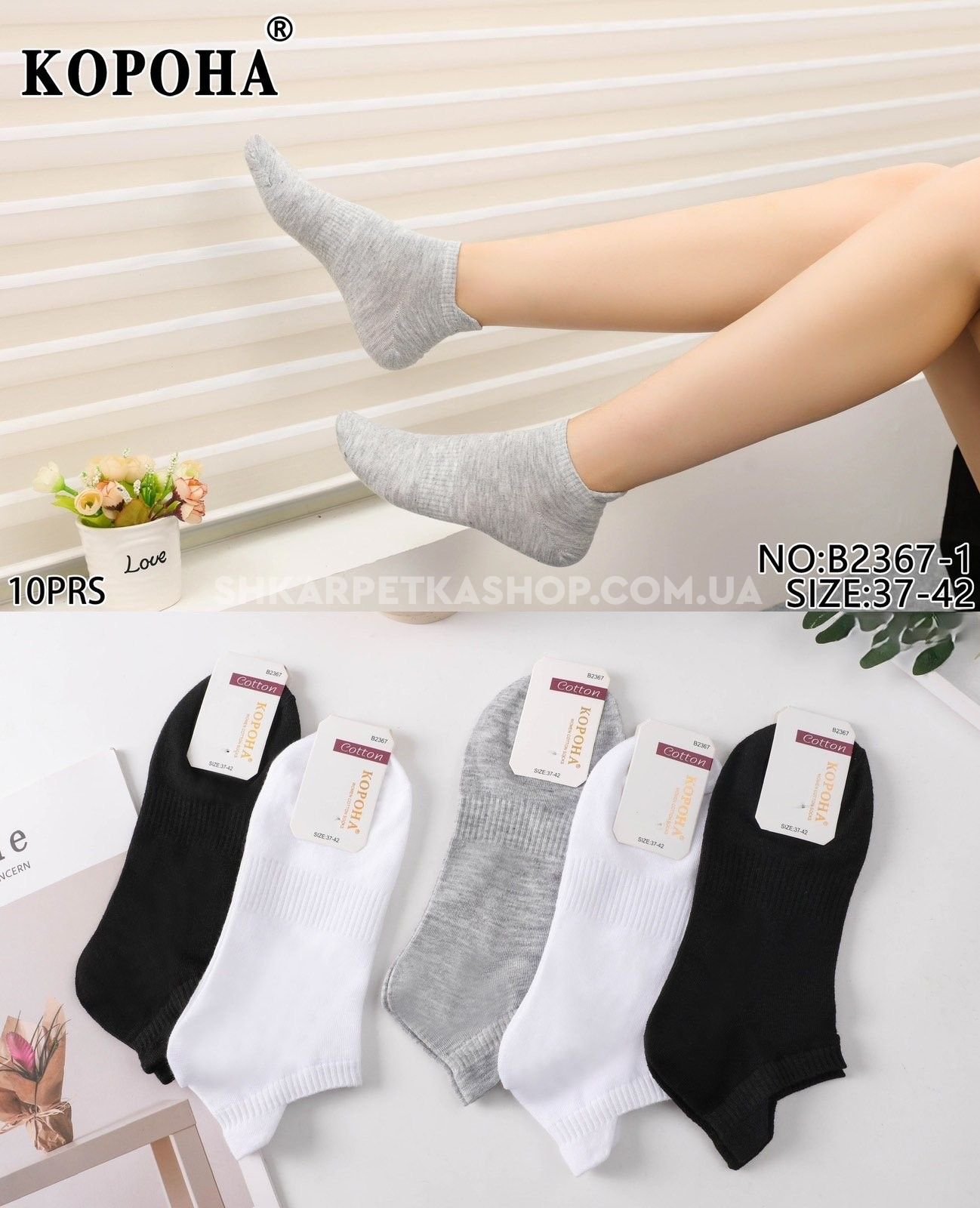 Шкарпетки "Корона" B-2367-1 стрейч жіночі, р. 37-42 -асорті -(Ультракороткі -сірі/білі/чорні +посередині резинка фіксатор +ззаду з віступом -жін.) -уп. 10 шт