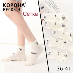Шкарпетки "Корона" BF-003-4 сітка жіночі, р. 36-41 -(сіточка /молочні з широкою середньою гумкою +мікс різних написів) - уп. 10 шт