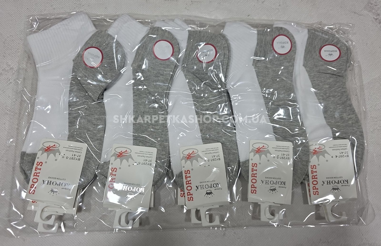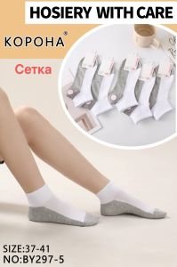 Шкарпетки "Корона" BY-297-5 сітка /cotton жіночі, р. 36-41 -асорті -(сіточка /укорочені -сірий низ +білий верх +гумка в рубчик -жін.) -уп. 10 шт