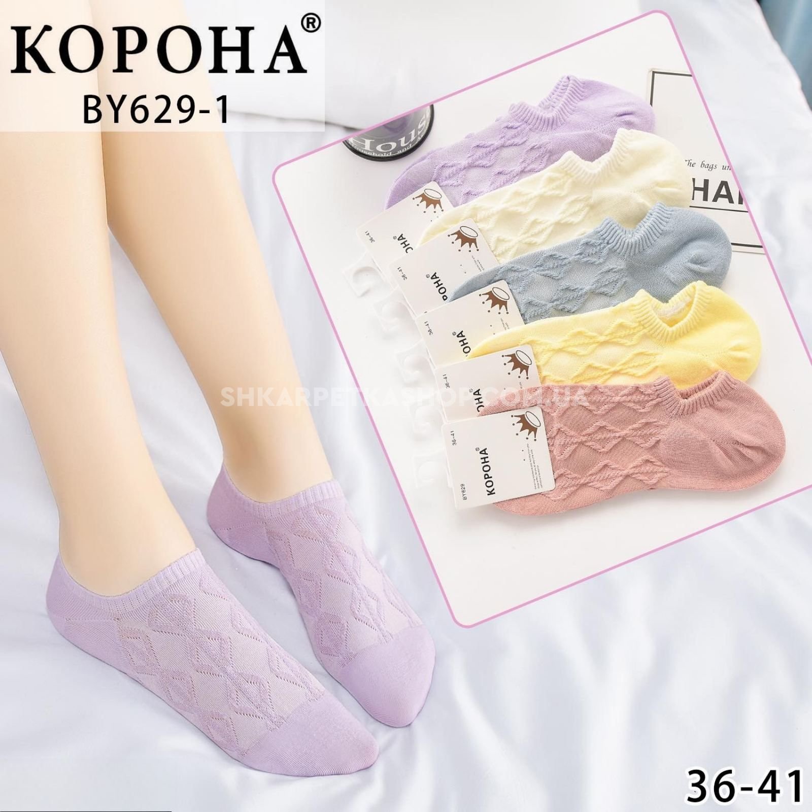 Шкарпетки "Корона" BY-629-1 стрейч /cotton жіночі, р. 36-41 -асорті -(Ультракороткі /кольорові з рельєфним візерунком із ромбів у довжину) -уп. 10 шт