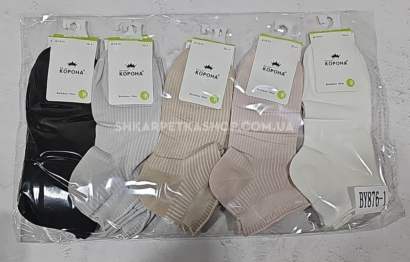 Шкарпетки "Корона" BY-876-1 стрейч /бамбук жіночі, р. 36-41 -асорті -(короткі /однотонні в тонкий рубчик +ослаблена гумка) - уп. 10 шт