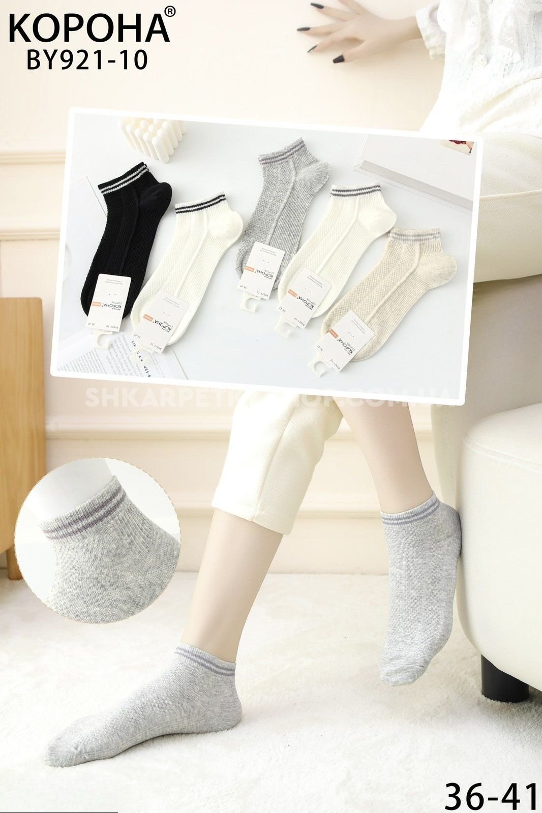 Шкарпетки "Корона" BY-921-10 стрейч жіночі, р. 36-41 -асорті -(Короткі /однотонні в дрібний рельєфний візерунок зверху + в дрібний рубчик знизу + на смужці гумки) -уп. 10 шт