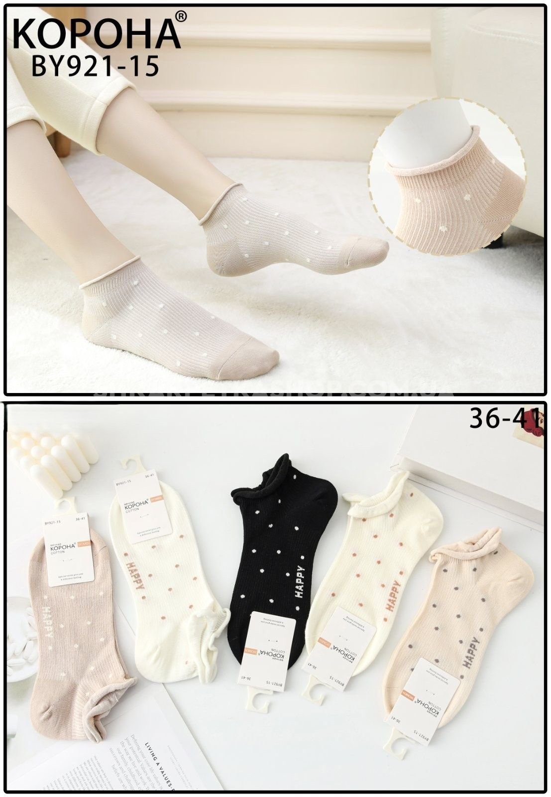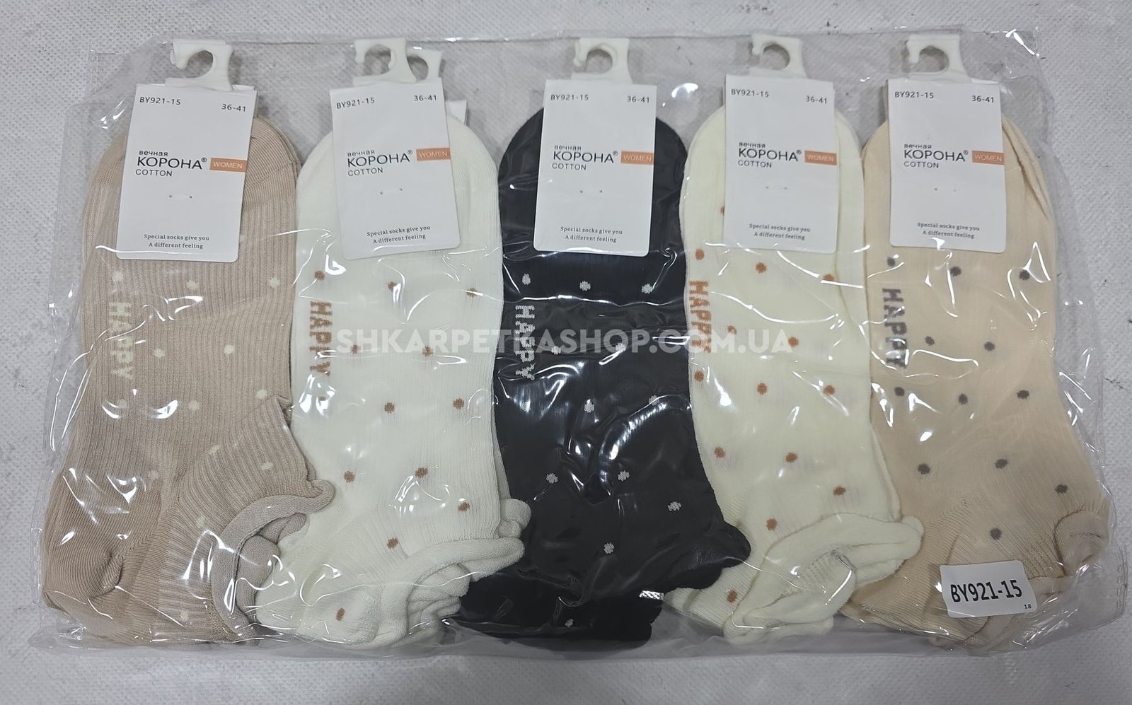 Шкарпетки "Корона" BY-921-15 стрейч жіночі, р. 36-41 -асорті -(Короткі /в дрібний рубчик +горошок +з ослабленою гумкою та із закрученим верхом +на підошві напис) -уп. 10 шт