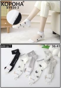 Шкарпетки "Корона" BY-934-3 стрейч жіночі, р. 36-41 -асорті -(Короткі /з прозорим верхом +бантики та написи на сірому /білому /чорному) -уп. 10 шт