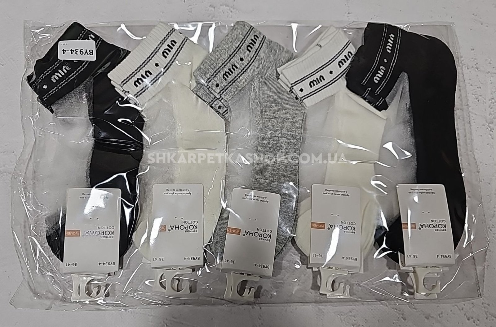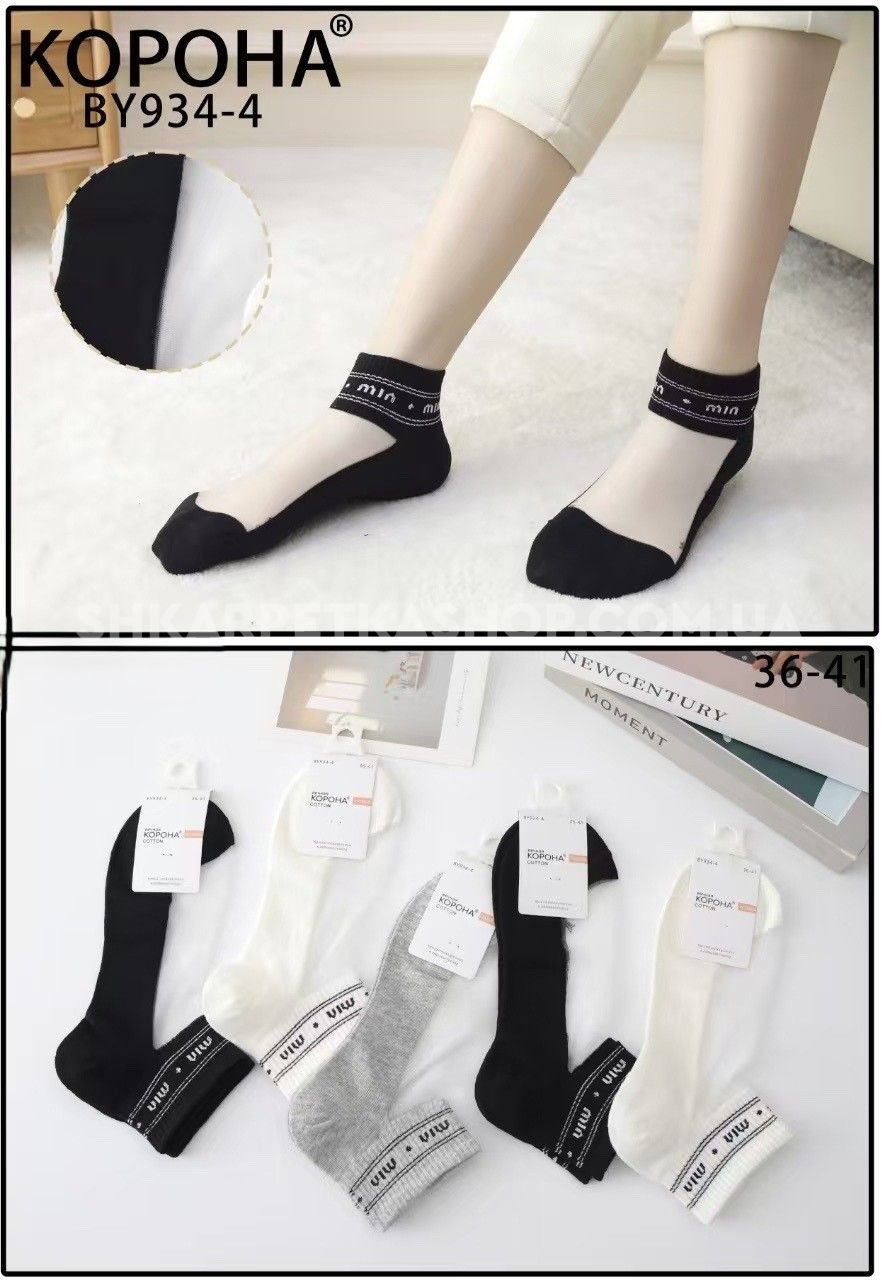 Шкарпетки "Корона" BY-934-4 стрейч жіночі, р. 36-41 -асорті -(Короткі /з прозорим верхом +на гумці написи min../min...на сірому /білому /чорному) -уп. 10 шт