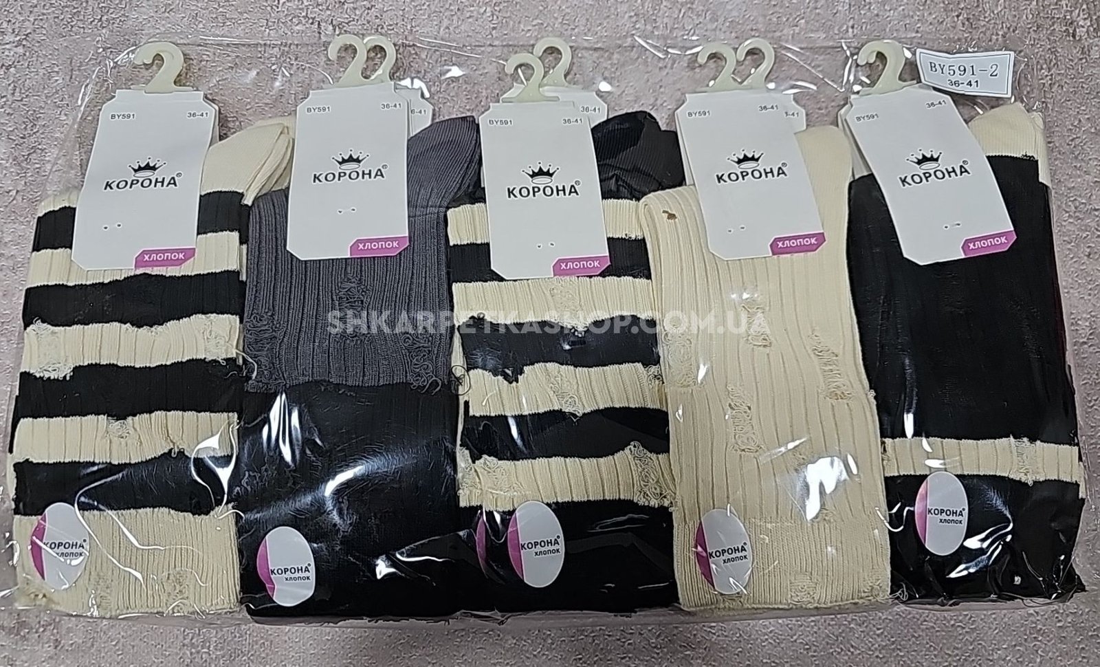 Шкарпетки "Корона" BY-591-2 стрейч / cotton жіночі, р. 36-41 - асорті - (Теніс / смугасті +однотонні в рубчик з порізами на широкій гумці) - уп. 10 шт