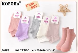 Шкарпетки "Корона" C-3003-1 стрейч дитячі на розмір взуття: 21-26, 26-31, 31-36 -асорті -(Дівчинка/ укорочені -однотонні +з широкою гумкою в рубчик) -уп. 10 шт