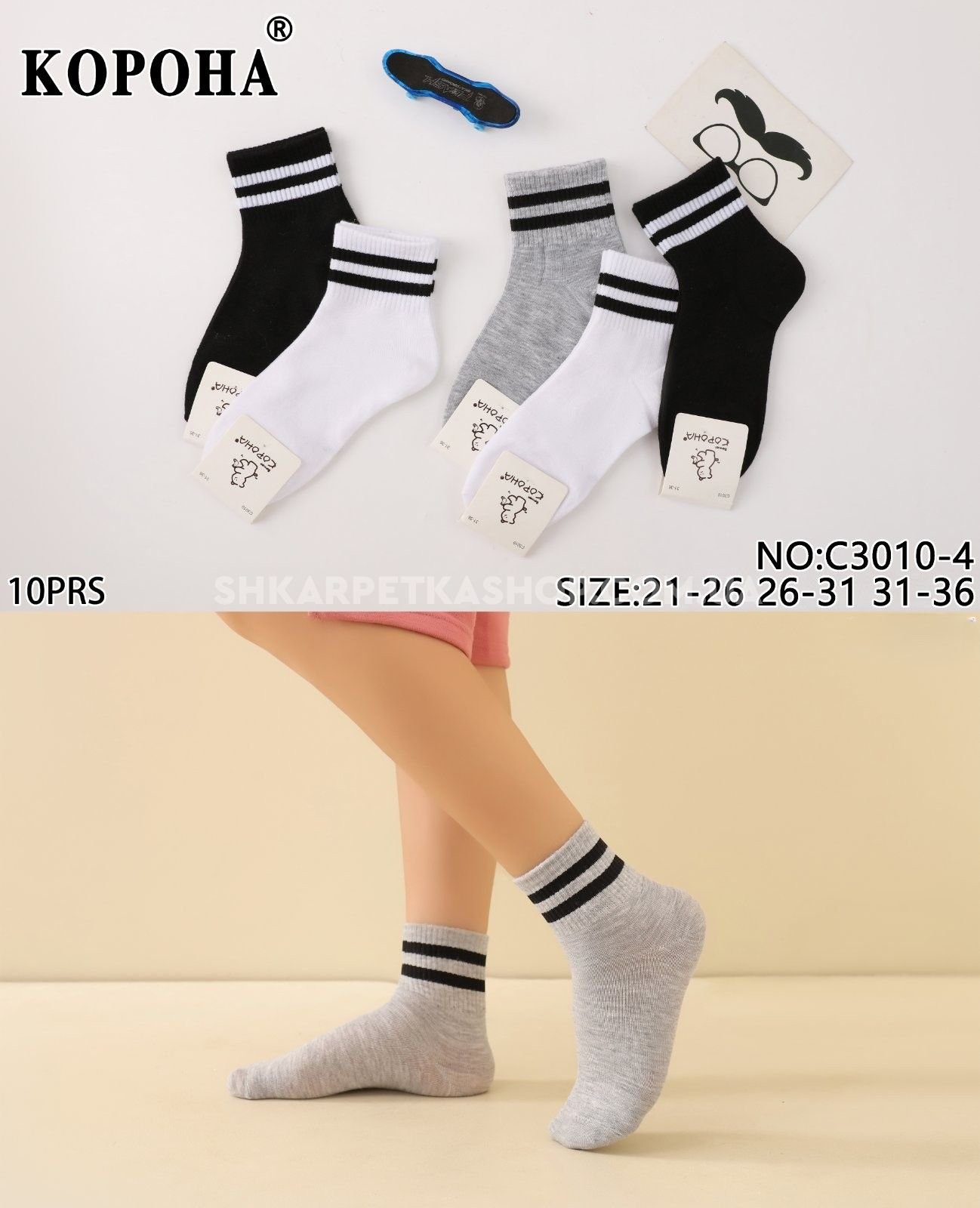 Шкарпетки "Корона" C-3010-4 стрейч дитячі на розмір взуття: 21-26, 26-31, 31-36 -асорті -(Універсальні/ середні -однотонні +на широкій гумці в рубчик дві смужки) -уп. 10 шт