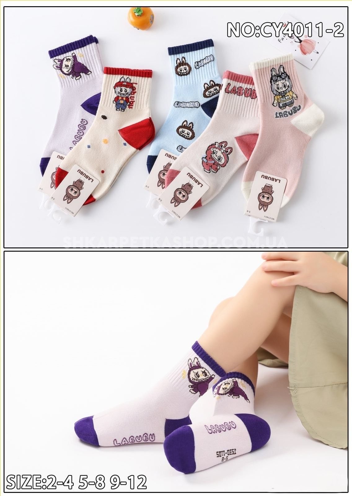 Шкарпетки "Корона" CY-4011-2 стрейч дитячі р. 2-4, 5-8, 9-12 років -асорті -(Дівчинка /мікс різних Ла-бу-бу +висока гумка в рубчик) -уп. 10 шт