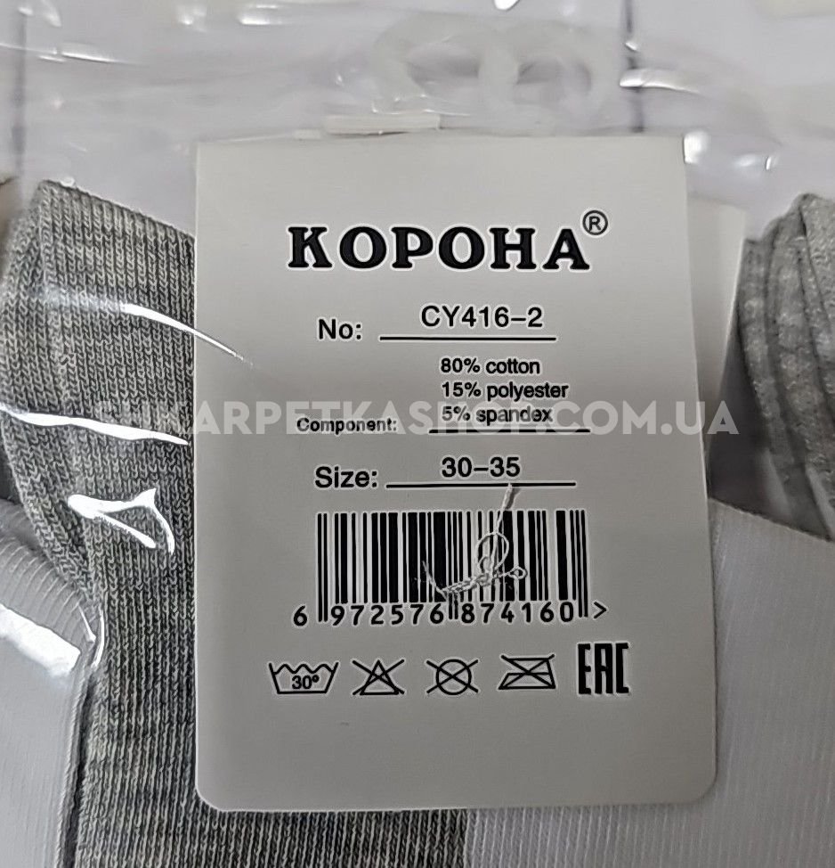 Шкарпетки "Корона" CY-416-2 стрейч /cotton підліткові, р. 30-35, 35-40 -асорті -(Високі-гладкі /білий верх +сіра підошва -підліток) -уп. 10 шт