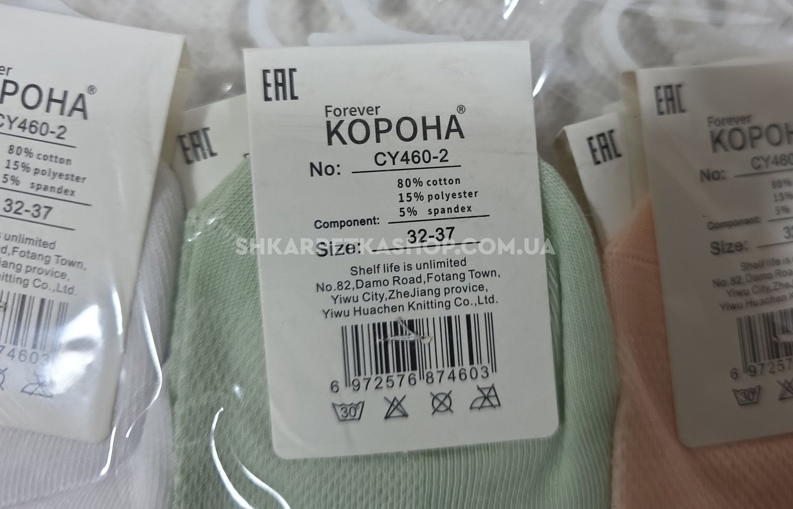 Шкарпетки "Корона" CY-460-2 сітка /cotton підліткові р. 32-37 -асорті -(Дівчинка -короткі -однотонні +ззаду на п'яті виступ / язичок) -уп. 10 шт