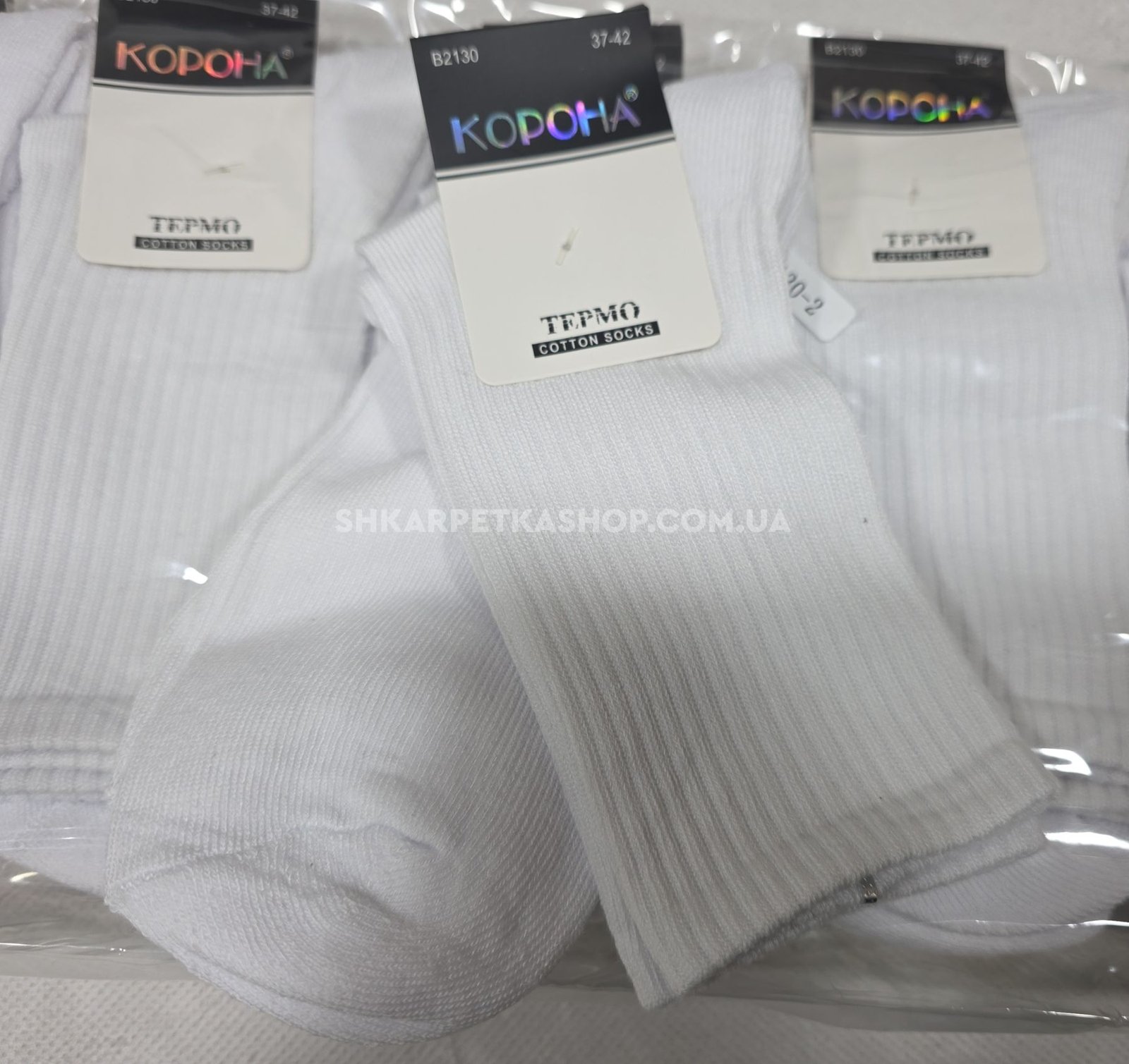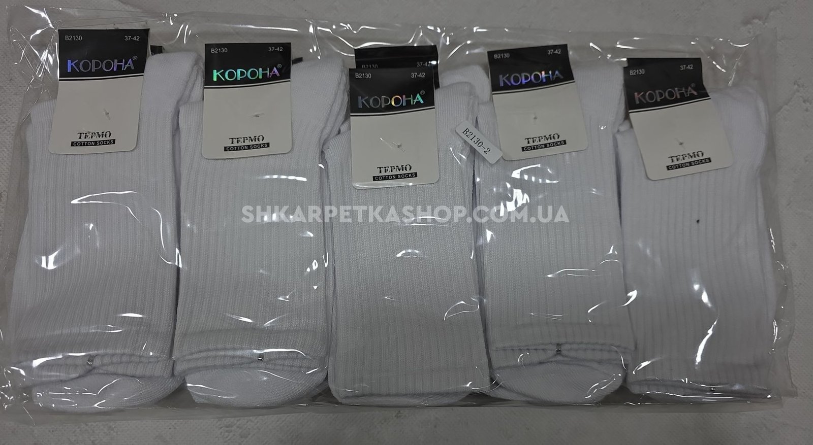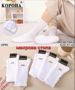 Шкарпетки "КОРОНА" В-2130-2 термо напівмахрові/ з махровою стопою жіночі, р. 37-42 -(Білі з високою гумкою в рубчик +махрова підошва /стопа -жін.) -уп. 10 шт
