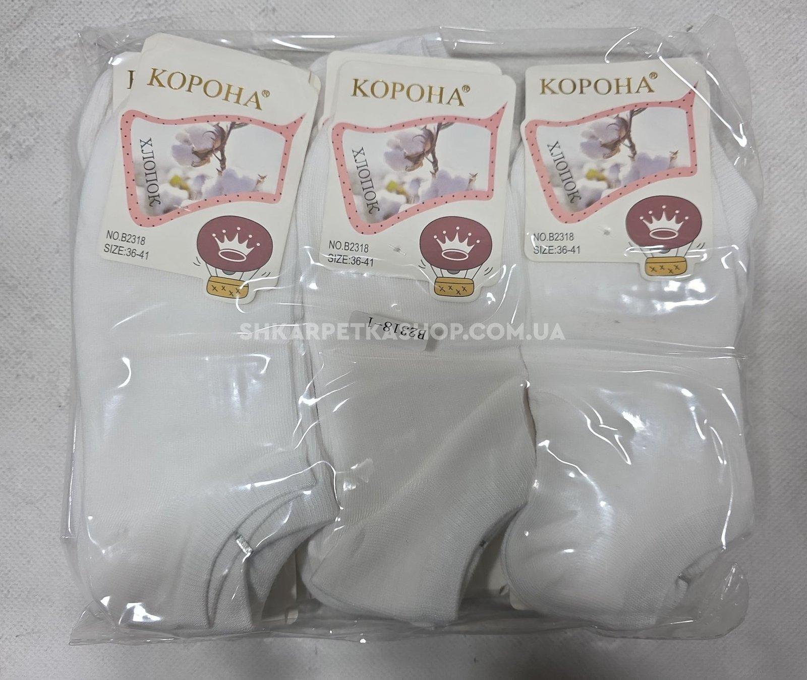 Шкарпетки "Корона" В-2318-1 стрейч /cotton жіночі, р. 36-41 -(Ультракороткі /білі -жін) -уп. 12 шт