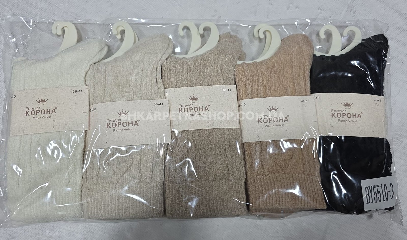 Шкарпетки "Корона" ВY-5510-3 панда вельвет жіночі, р. 36-41 -асорті -(однотонні в рельєфній візерунок з ромбами) -уп. 10 шт