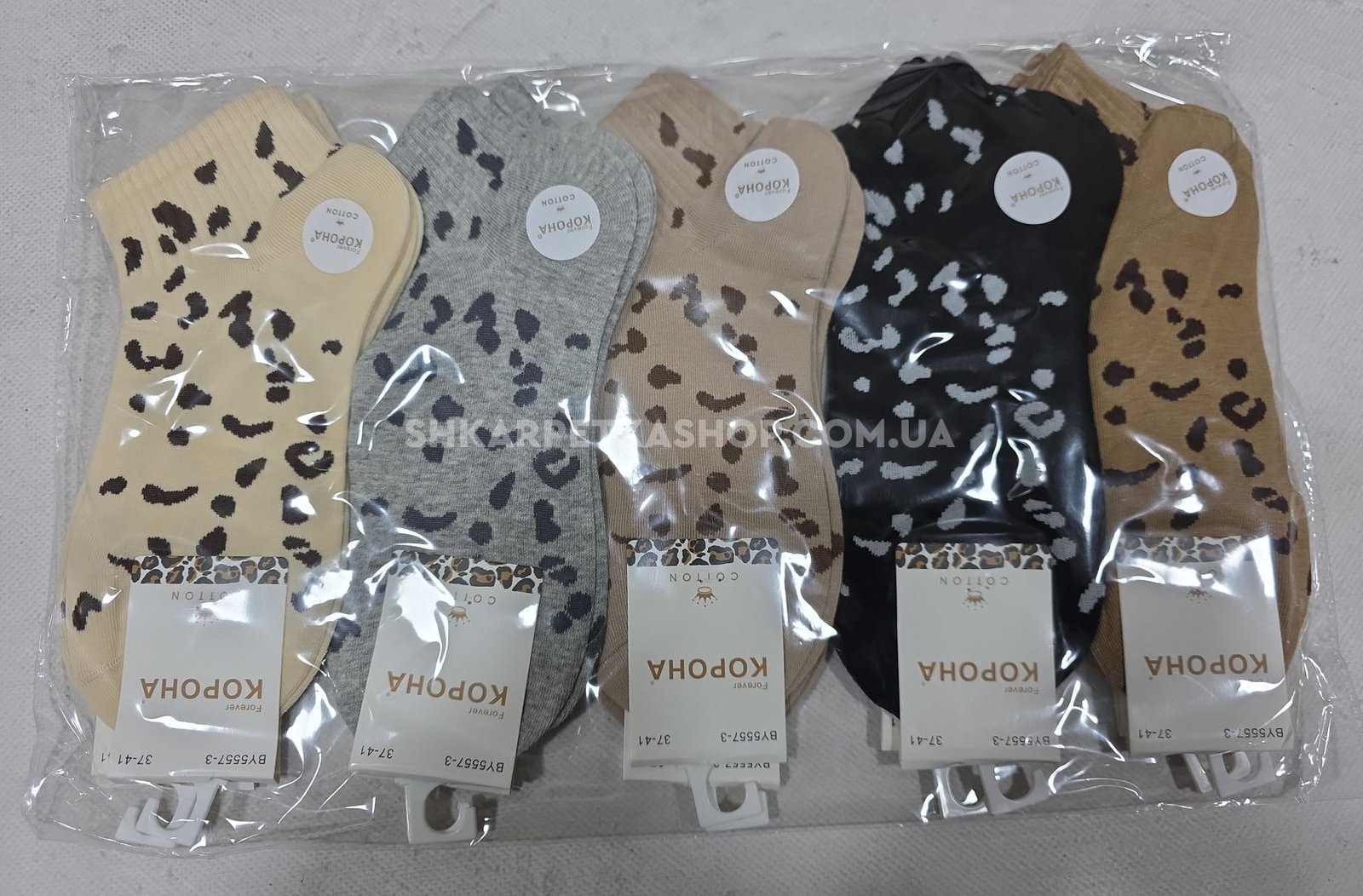 Шкарпетки "Корона" ВY-5557-3 стрейч/cotton жіночі, р. 37-41 -(Укорочені з леопардовими цятками по всій шкарпетці та гумці в рубчик) -уп. 10 шт