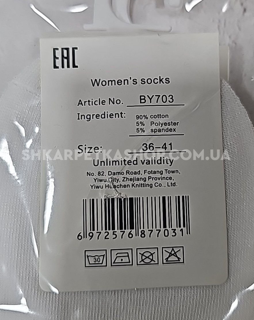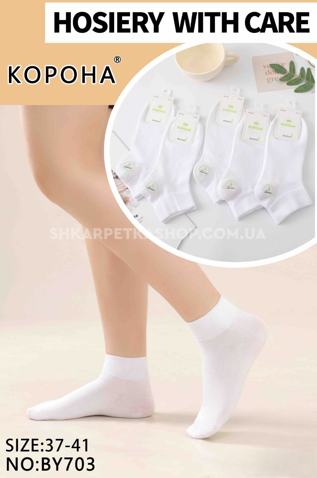Шкарпетки "Корона" ВY-703 стрейч /бамбук жіночі, р. 36-41 -(Укорочені / білі з гладкою середньою гумкою) -уп. 10 шт