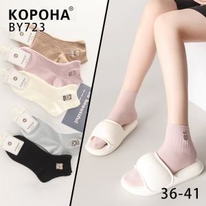 Шкарпетки "Корона" ВY-723 стрейч /cotton жіночі, р. 36-41 -асорті -(Середні /однотонні в рубчик +збоку вишивка різних ведмедів) -уп. 10 шт
