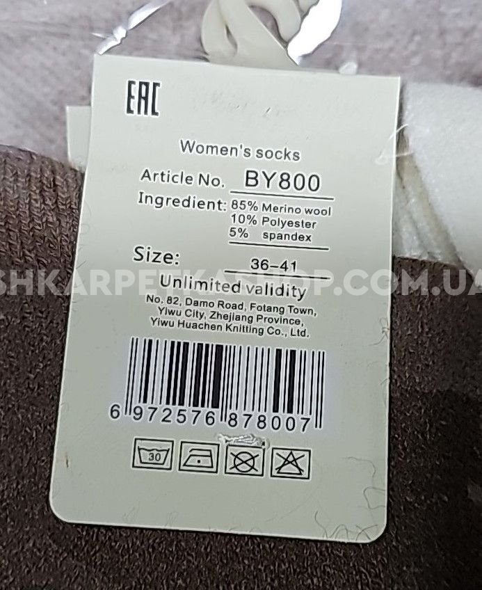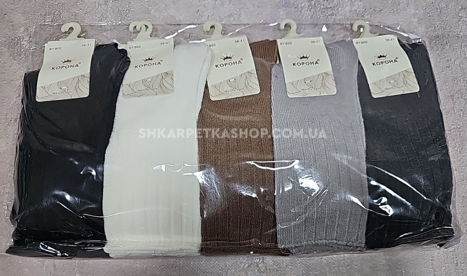 Шкарпетки "КОРОНА" ВY-800-2 термо з мериносової вовни /кашемір жіночі, р. 36-41 -(Високі /однотонні з високою гумкою в рубчик) -уп. 10 шт