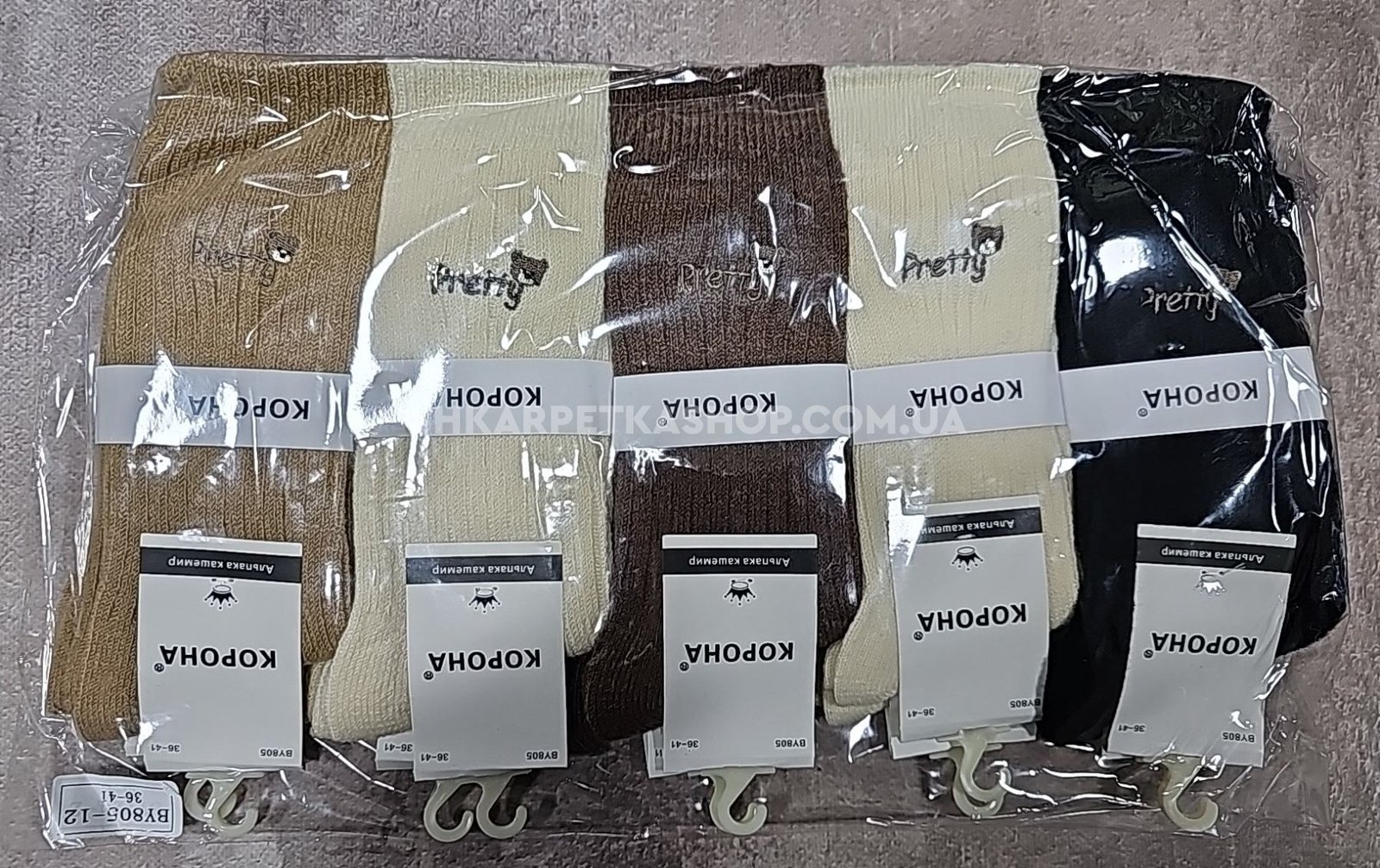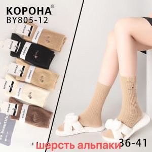 Шкарпетки "КОРОНА" ВY-805-12 термо альпака вовна жіночі, р. 36-41 -асорті -(Високі /кавовий мікс у рубчик +збоку маленька мордочка ведмедика з написом) -уп. 10 шт
