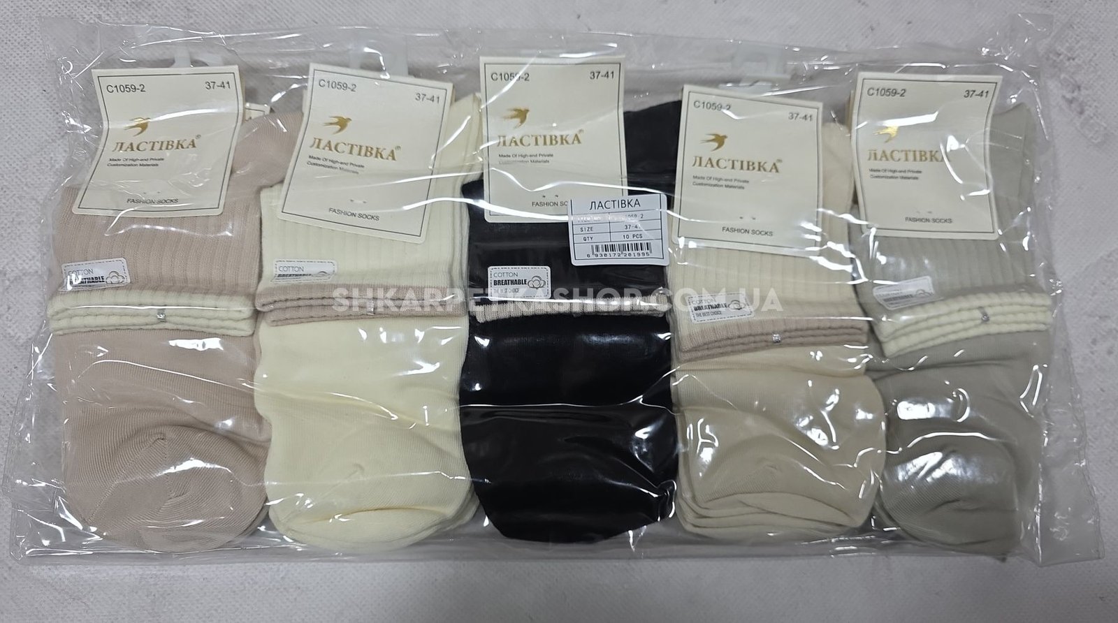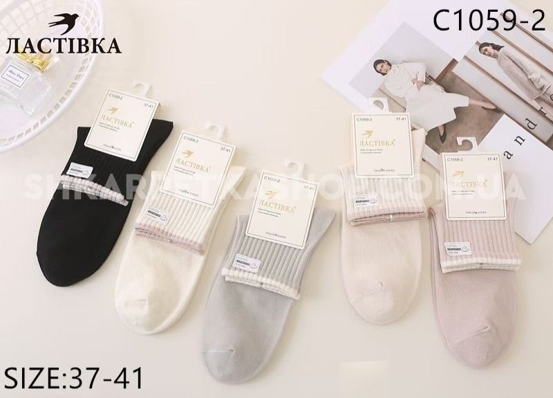Шкарпетки "Ластівка" С-1059-2 стрейч/cotton жіночі, р. 37-41 -асорті -(Укорочені /однотонні +зверху на гумці в рельєфний рубчик обідок) -уп. 10 шт