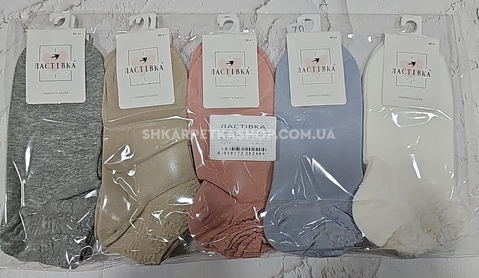 Шкарпетки "Ластівка" С-3337-28 стрейч /cotton жіночі, р. 36-41 -асорті -(Укорочені /однотонні з рельєфним візерунком на гумці) -уп. 10 шт