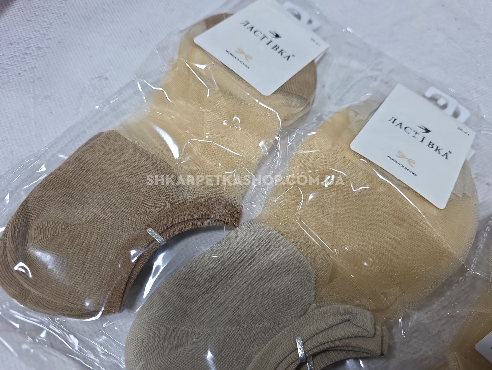 Шкарпетки "Ластівка" С-3345-2 nylon+cotton жіночі, р. 36-41 -(Бежевий мікс ультракороткі з нейлоновою серединою +мисок і п'ята бавовняні) -уп. 10 шт