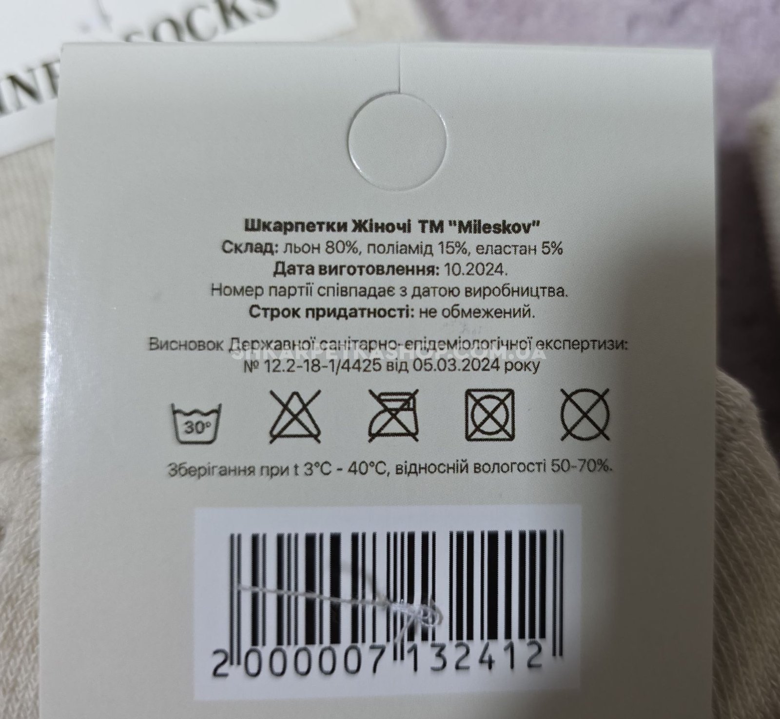 Шкарпетки "MILESKOV" LG-033-3 льон /стрейч жіночі, р. 36-41 -(Льон +з укороченою гумкою в рубчик -жін.) -уп. 12 ш